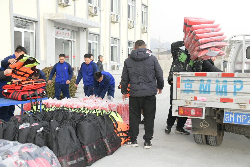 被救援人员向山区村捐赠共计280件救生衣。新华社发